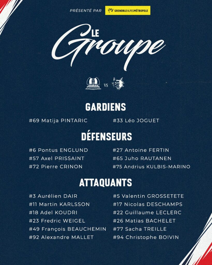 À deux minutes de la première sirène, Grenoble est pénalisé, mais même en infériorité numérique, les BDL continuent d’afficher leurs intentions offensives. L’exemple le plus frappant reste cette action dangereuse menée par Valentin Grossetête, qui se retrouve seul face à la cage adverse, illustrant la domination et la confiance grenobloises sur ce premier tiers-temps.