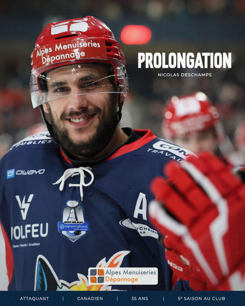 Arrivé à Grenoble en 2021, le Canadien Nicolas Deschamps poursuit l’aventure en Isère. Désormais double champion de France avec les BDL (2022, 2025), le Québécois a encore réalisé une saison pleine. Avec 68 rencontres disputées en 2024-2025, il fait partie des deux seuls joueurs (avec Kyle Hardy) à avoir pris part à l’intégralité des matchs de l’équipe.
