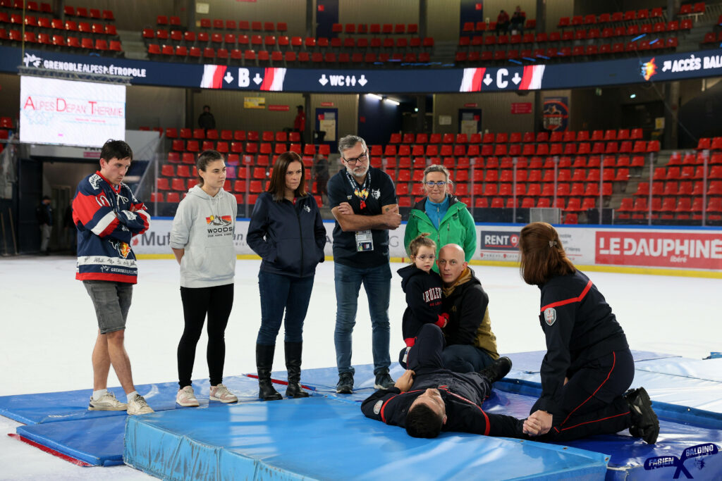 Le 26 septembre 2025, les BDL recevaient Anglet dans le cadre de la 5ème journée de Synerglace Ligue Magnus. Pour l’occasion, les Jeunes Sapeurs-Pompiers (JSP) de la caserne de Saint-Marcellin ont eu la chance d’assister au match et d’animer une initiation aux gestes qui sauvent, sur la glace de Polesud.