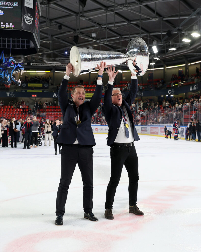 Edo Terglav et Per Hanberg soulevant la Coupe Magnus le 5 avril 2025 à Polesud