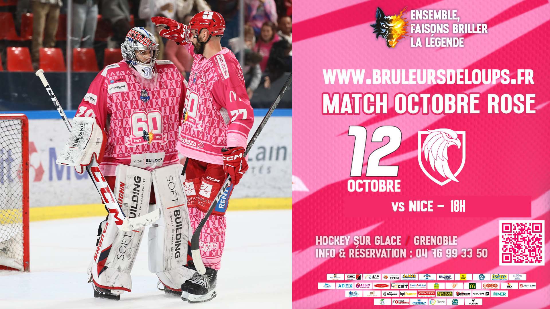 Ce soir, les Brûleurs de Loups accueillent les Aigles de Nice à 18h00 à la patinoire Polesud, dans le cadre de la 9ème journée de Synerglace Ligue Magnus. Cette rencontre est parrainée par AESIO Mutuelle et placée sous le thème d’Octobre Rose.