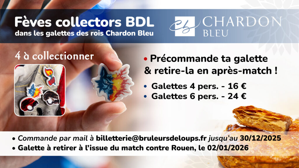 Cette année, les Brûleurs de Loups et les boulangeries-pâtisseries Chardon Bleu s’associent pour vous proposer des galettes des rois avec 4 fèves BDL à collectionner ! Les galettes des rois sont disponibles en précommande jusqu’au 30 décembre ! Vous aurez la possibilité de récupérer vos galettes le vendredi 2 janvier 2026 à la fin du […]