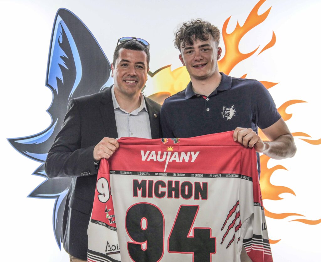 Ethan Michon aux côtés de Nicolas Vouthier, président des Grizzlys de Vaujany