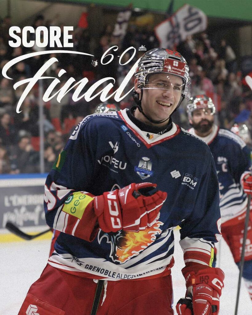 En fin de rencontre, Aurélien Dair écope de deux minutes pour avoir fait trébucher un adversaire. Une situation qui aurait pu relancer Chamonix… mais c’est tout l’inverse : revenu de pénalité, Dair est parfaitement servi par Guillaume Leclerc, s’échappe seul devant le but et marque le sixième but grenoblois !